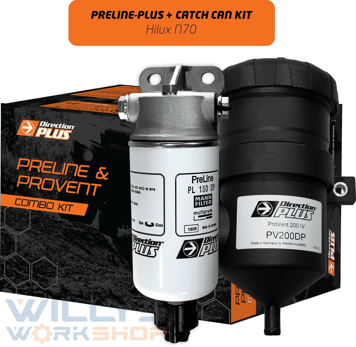 Protect your diesel engine with Direction-Plus™ PreLine-Plus Pre-Filter + Provent Ultimate Catch Can Combo Kit. This is the Ultimate Defence against water contamination, costly injector failure, carbon build-up and reduced performance. Our PreLine-Plus offers up 100% water separation efficiency* and our Provent Catch Can offers up to a massive 98% oil separation efficiency. With this dual kit you can‘t go wrong!