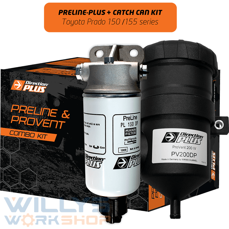 Protect your diesel engine with Direction-Plus™ PreLine-Plus Pre-Filter + Provent Ultimate Catch Can Combo Kit. This is the Ultimate Defence against water contamination, costly injector failure, carbon build-up and reduced performance. Our PreLine-Plus offers up 100% water separation efficiency* and our Provent Catch Can offers up to a massive 98% oil separation efficiencyWith this dual kit you can‘t go wrong!
