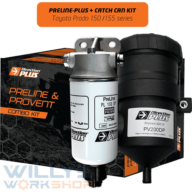 Protect your diesel engine with Direction-Plus™ PreLine-Plus Pre-Filter + Provent Ultimate Catch Can Combo Kit. This is the Ultimate Defence against water contamination, costly injector failure, carbon build-up and reduced performance. Our PreLine-Plus offers up 100% water separation efficiency* and our Provent Catch Can offers up to a massive 98% oil separation efficiency. With this dual kit you can‘t go wrong!